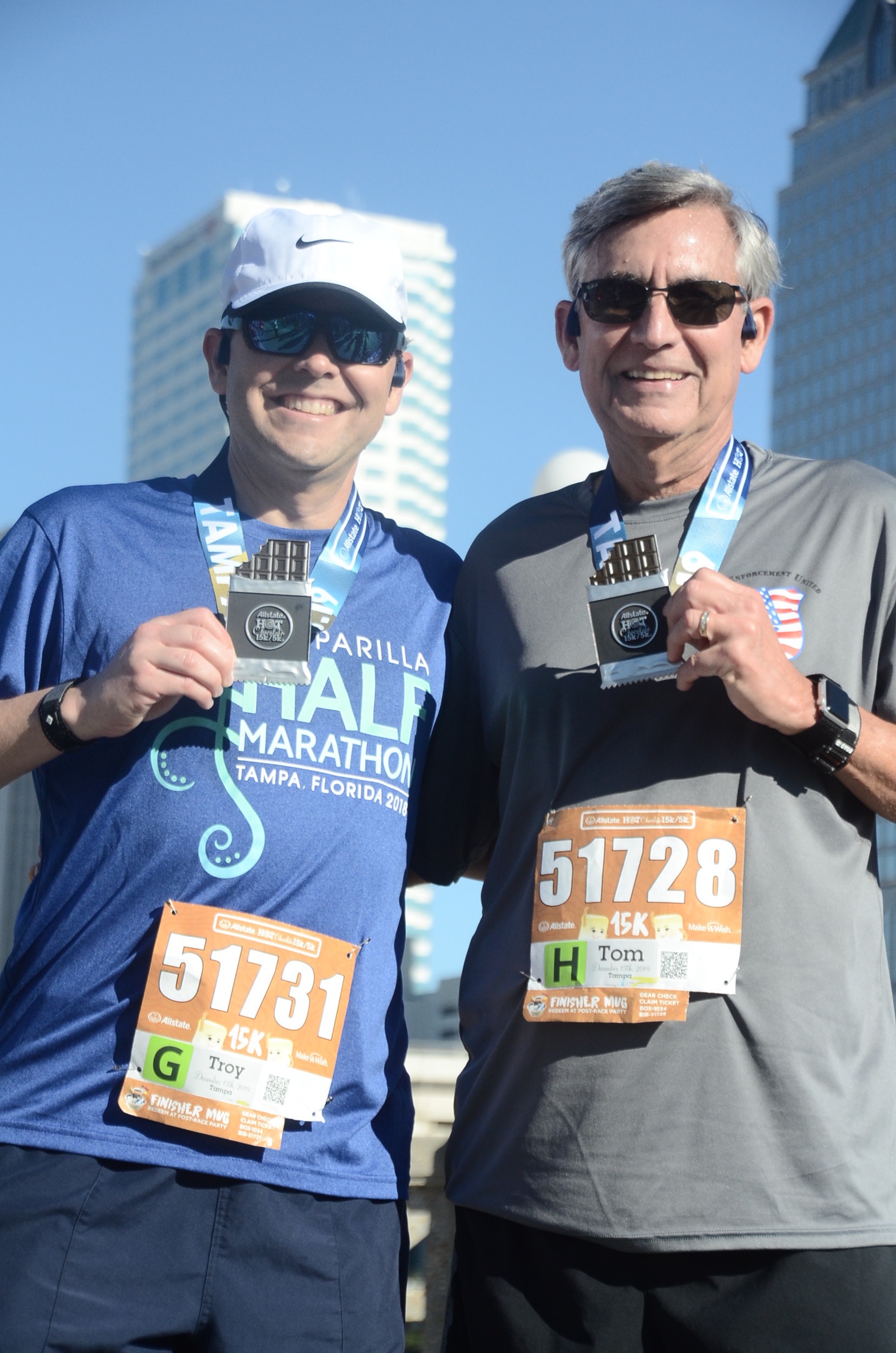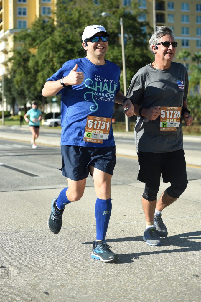 Today’s run comes after four days of painful shin splints on my right leg. Instead of giving it my all and trying for a personal best, I decided to run at a leisurely pace with my dad who also has been dealing with a injury. All in all, we didn’t do too badly, finishing at 1:47:27 or at an average pace of 11:32. Frankly, better than I though either of us would be able to do.